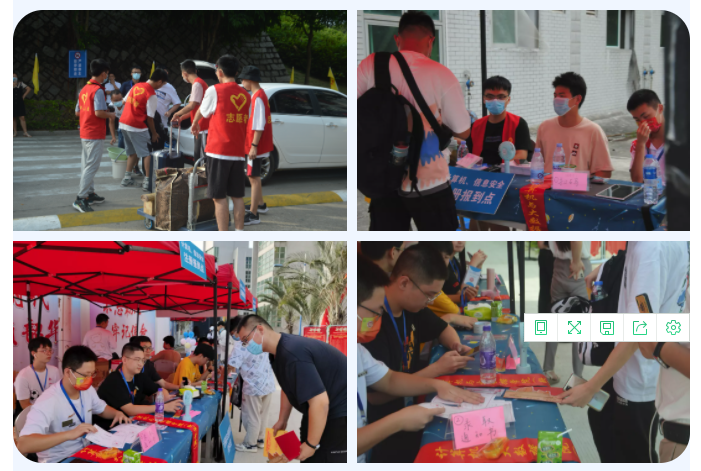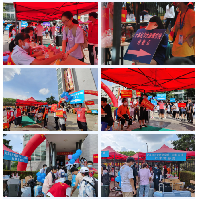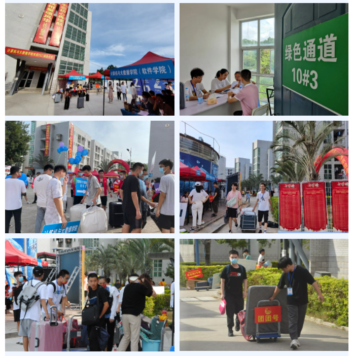 前往宿舍。因疫情防控的需要,家长不能陪同入校,但热情的学长学姐们一直在帮助新生搬运行李。他们来回穿梭在宿舍楼和行李寄存点之间,在高温下为新生们而忙碌。学院严格落实绿色通道和资助政策,第一时间掌握和了解家庭经济困难学生情况。