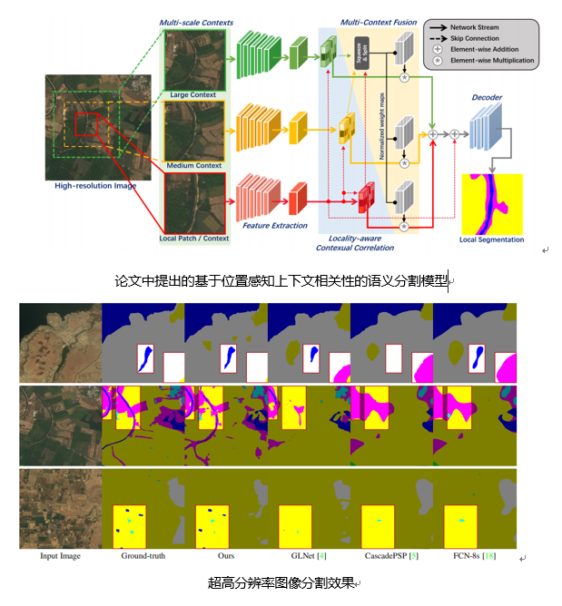 该论文针对超高分辨率图像分割展开研究,将超高分辨率图像划分为规则块进行局部分割,然后将局部结果合并为高分辨率语义掩码。文章引入了一种基于位置感知上下文相关性的分割模型来处理局部块,并且提出了一个细化网络来优化掩码轮廓,减少边界伪影。实验表明,该模型在公共基准测试中的表现优于当前最先进的方法。