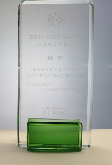 在2021年12月16日-18日举行的CNCC 2021(中国计算机大会)上,我院郭文忠教授、郭昆副教授、陈羽中教授与国网信通亿力科技有限责任公司联合完成的项目“基于云架构的能源监测与分析平台的研制及产业化”获得2021年度“CCF科学技术奖”科学技术进步杰出奖。