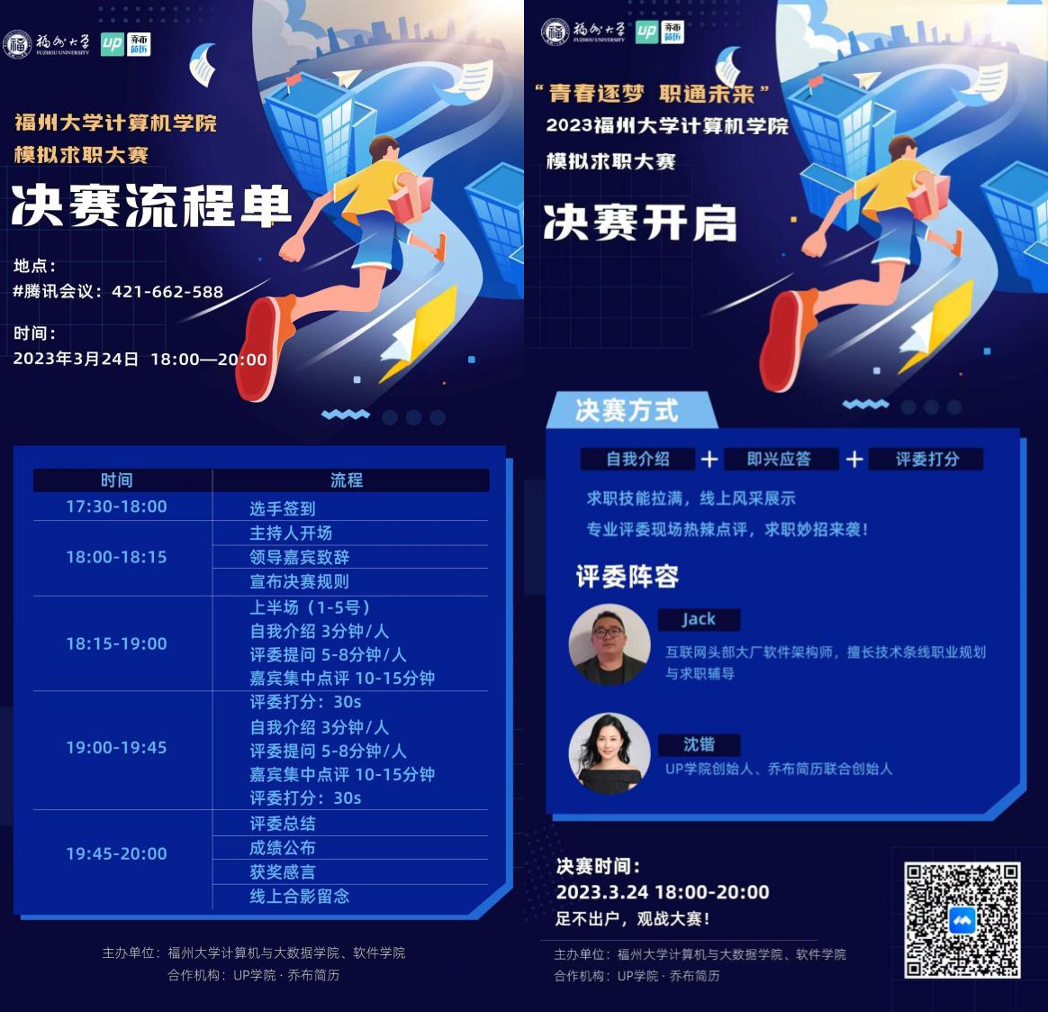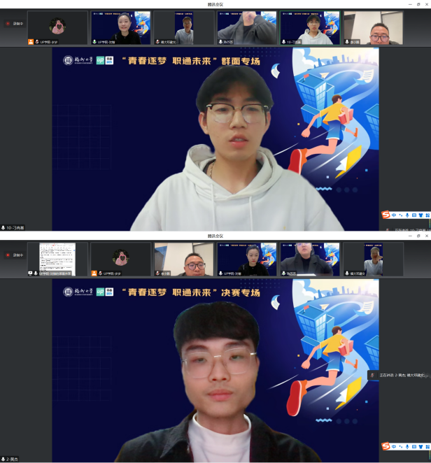 为助力大学生树立正确的就业观,切实提升学生的就业竞争力,全力促进高质量充分就业,3344体育官方网站特别组织策划“青春逐梦,职通未来”模拟求职大赛系列活动。3月24日晚,由3344体育官方网站主办,UP学院·乔布简历承办的模拟求职大赛决赛在腾讯会议直播间高燃开启,为同学们带来了一堂生动真实的“就业实践大课”。